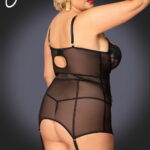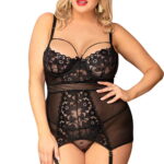 An irresistible chemise with elegant floral lace and sultry sheer fabric. The chemise has adjustable shoulder straps and arrives with matching sheer fabric thong and removable suspender straps. PLEASE NOTE: Stockings not included. Please see related products. This item arrives packaged in a YesX satin bag.