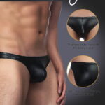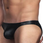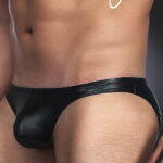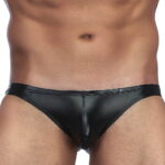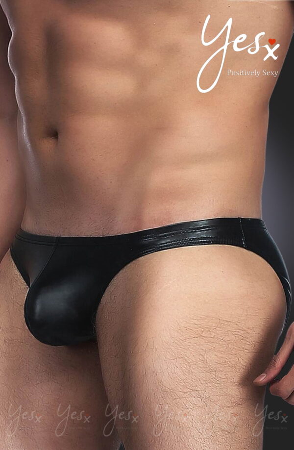Sleek and sexy black wet look briefs that are tight-fitting but stretchy which make these briefs ideal for day or night wear.