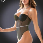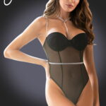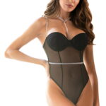 Guarantee all eyes are on you with this glamourous sheer bodysuit with stunning diamante effect detailing. Features underwired cups and the back cross over straps are adjustable. Perfect for a romantic night in or out. This item arrives packaged in a YesX satin bag.