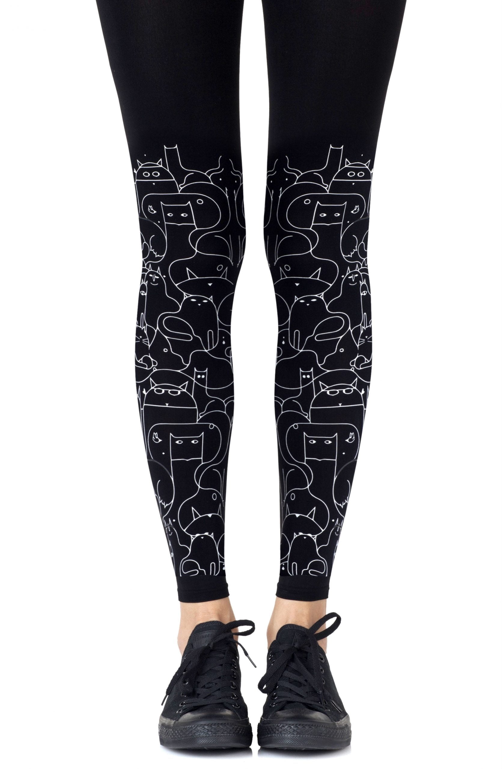 Be a proud feline lover with Cat Lady tights that feature an allover cat illustration and make your legs look ferocious. Colour: Black tights with Light Grey print. Thickness: 120 denier. Your entire leg will be getting Zohara love with allover prints. Both sides are not created equal with allover tights so please look at the foot of the tights before wearing to ensure you don’t step on the print. (The front print will be lower than the back.) Tights that end at your angle and set your feet free. Unless they have X-ray vision no one will be able to see through these opaque tights. Hand print no two are the same.
