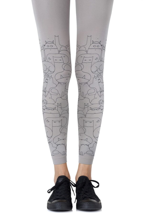 Be a proud feline lover with Cat Lady tights that feature an allover cat illustration and make your legs look ferocious. Colour: Light Grey tights with Black print. Thickness: 120 denier. Your entire leg will be getting Zohara love with allover prints. Both sides are not created equal with allover tights so please look at the foot of the tights before wearing to ensure you don’t step on the print. (The front print will be lower than the back.) Tights that end at your angle and set your feet free. Unless they have X-ray vision no one will be able to see through these opaque tights. Hand print no two are the same.