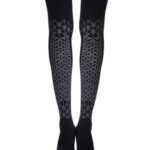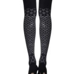 Frozen shapes print tights. Grey print on black designed tights. Black opaque tights – 120 denier. Grey print on both legs on the front & the back.