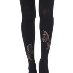 Mythical creature? Express that with the Magic Dance tights that feature a reversible graphic of our favourite one-horned creature. Don’t ever stop believing. Colour: Black tights with Gold print. Thickness: 120 denier. No doubt you will shine with our metallic prints. Please note that these prints require extra care when washing and will naturally fade with wear. Unless they have X-ray vision no one will be able to see through these opaque tights. Is the party in the front or the back? You choose with reversible tights where to place all the fun. Hand print no two are the same.