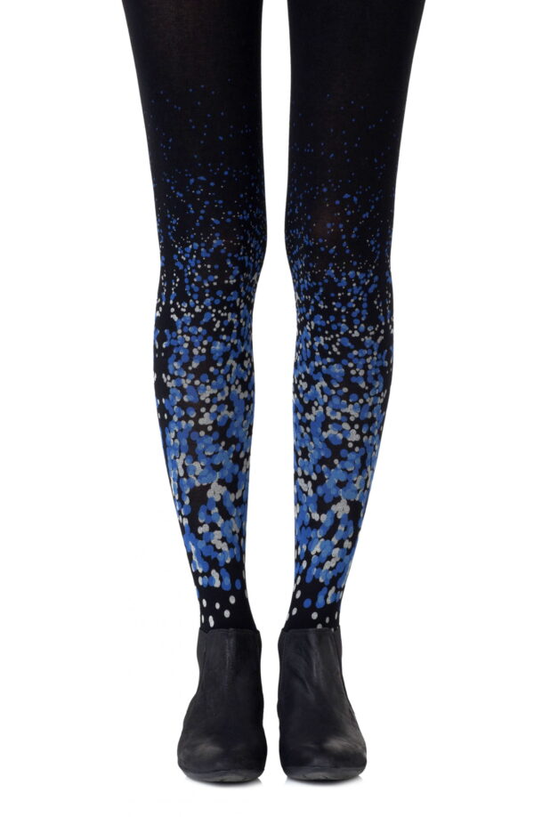 Dance like Mick Jagger. The Paint It Black tights feature a paint like print that looks perfect when paired with your fave black mini. Colour: Black tights with Blue Grey print. Thickness: 100 denier. Your entire leg will be getting Zohara love with allover prints. Both sides are not created equal with allover tights so please look at the foot of the tights before wearing to ensure you don’t step on the print. (The front print will be lower than the back.) Made from Cotton. No doubt you will shine with our metallic prints. Please note that these prints require extra care when washing and will naturally fade with wear. Unless they have X-ray vision no one will be able to see through these opaque tights. Hand print no two are the same.