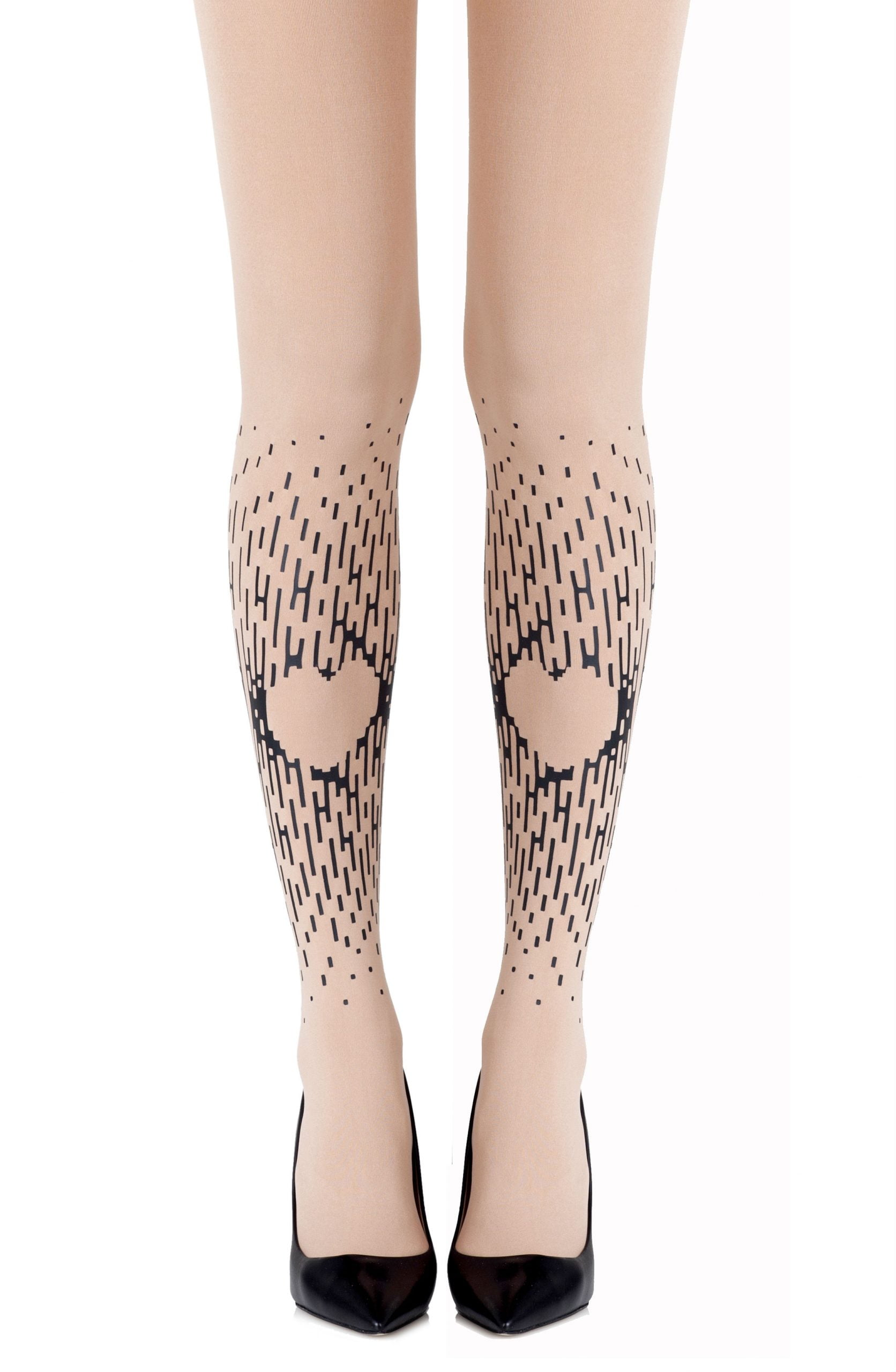 Love is all around with the Spread The Love tights that feature an emerging heart from an abstract graphic that is two-sided. We love actually. Colour: Powder tights with Black print. Thickness: 120 denier. Unless they have X-ray vision no one will be able to see through these opaque tights. With an identical print on the front and back get ready for 360° visual impact. Hand print no two are the same.