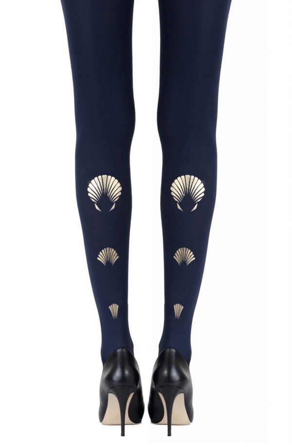 Go full on mermaid with What The Shell tights that feature two-sided prints of shell graphics. Colour: Navy tights with Gold print. Thickness: 120 denier. No doubt you will shine with our metallic prints. Please note that these prints require extra care when washing and will naturally fade with wear. Unless they have X-ray vision no one will be able to see through these opaque tights. Is the party in the front or the back? You choose with reversible tights where to place all the fun. Hand print no two are the same.